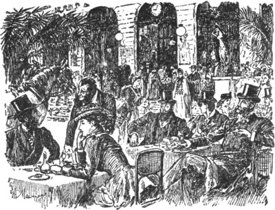 Бесчисленные столики вокруг заняты путешественниками: они заказывают завтрак либо уже позавтракали, курят, болтают и посматривают вокруг. Здесь царит невероятное смешение языков и самая оживленная, деловая и веселая атмосфера во всем мире, так как это излюбленное место для деловых встреч богачей Европы и Америки; здесь пахнет банкнотами и золотом.