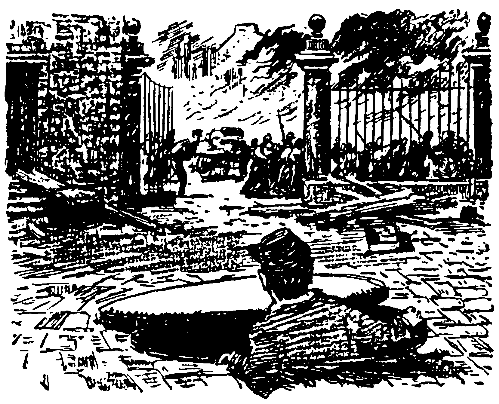 Ему не пришлось ждать так долго, как он рассчитывал. Вскоре заметив, что в трубе стало светлее, мальчик понял, что приближается к выходу. Он заторопился навстречу свету и без дальнейших приключений добрался до колодца с приподнятой крышкой. Упираясь ногами в железные скобы, Кри-Кри ухватился сперва одной рукой, а потом и другой за край люка. Однако через открытую часть колодца нельзя было даже высунуть голову. Тогда, освободив одну руку, он стал толкать крышку. Она плохо поддавалась. Шарло пришлось затратить немало усилий, пока наконец крышка уступила и сдвинулась вбок настолько, что он мог пролезть в образовавшееся отверстие.