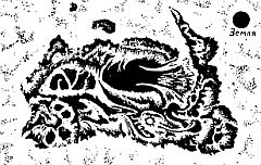 Рисунок крупного солнечного пятна. Справа вверху показаны сравнительные размеры Земли