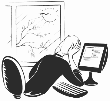 Хотя это почти невозможно, старайтесь не смотреть подолгу пристально на экран, постоянно перемещайте глаза по экрану. Старайтесь периодически, через каждые 3–5 мин, переводить взгляд с экрана монитора на самый дальний предмет в комнате или на отдаленный объект за окном.