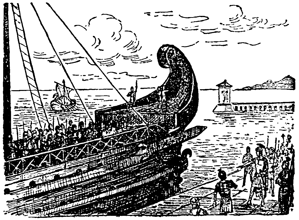 Подплывая к городу, воины увидели легионы, выстроенные на пристани, консула, его легатов [45] и друзей.