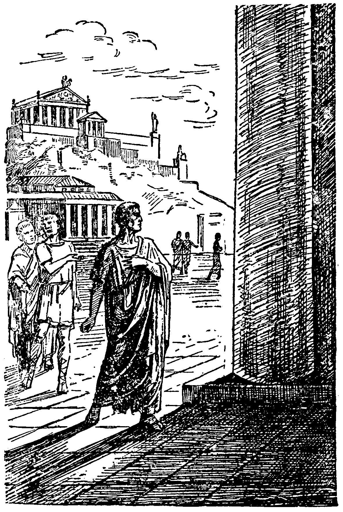 Когда они подошли к Табулярию, в котором хранился государственный архив, Тиберий остановился. Здание возвышалось на склоне Капитолия, над форумом, и белело дорическими колоннами. [115] Колонны и арки были испещрены неразборчивой скорописью. Тиберий читал, и сердце его учащённо билось: «Гракх, защити нас», «Дай нам земли», «Я голодаю», «Я нищий». А на одной из капителей [116] чётко выделялась жирная надпись углём: «Гракх, борись! Будешь народным трибуном».