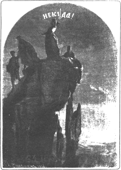 Вакуум — и в смежных искусствах, вообще-то весьма жадных к лесковскому слову. За все сто двадцать лет, что существует роман Лескова, — единственнаяиллюстрация, правда, сделанная знаменитым Михаилом Микешиным, — та самая обложка к вольфовскому изданию 1867 года, о которой Василий Слепцов писал с непередаваемым ядом: на виньетке нарисован «самг-н Стебницкий, который подает руку девушке, стоящей на скале и совершенно готовой упасть в пропасть, если б не стоял тут честный автор этого честного романа…» Положим, у Слепцова были свои причины для раздражения, но в микешинской обложке впрямь есть что-то и раздражающе-благостное, и странно не вяжущееся с текстом. Художник вознес в пространство романтическую скалу, на которой в живописных позах расставил на краю пропасти несколько патетических фигур; внизу — острые скалы с назидательной надписью: «1863–1864» (то есть: время «новых людей»); из-за горизонта — далекое солнце, которого люди не видят; над ними, в высоком просторе неба — название романа, которому художник от своего темперамента прибавил восклицательный знак: «Некуда!» В стылой законченности этой гравюры куда больше от известного микешинского памятника тысячелетию России, тогда же сделанного, или от иллюстраций к Библии работы Доре, тогда широко популярных, — чем от горячего, яростного, захлебывающегося и «несправедливого» лесковского текста. Лесков впоследствии говорил, что это он сочинил им виньетку;говорил в шутку, подтрунивая над художником. А ведь было, чтоприкрывать шуткой: хоть и сделана «виньетка» с авторской подсказки — совсем далека она от плоти лесковского романа, и более всего в ней поражает отсутствие живой связи с текстом. Микешин сделал вариантобложки: над обрывом — одинокая женская фигура, глаза завязаны, руки расставлены (эскиз сохранился у художницы Н. В. Красовитовой). Кто-то забраковал этот вариант. Вольф? Сам Микешин? Лесков?