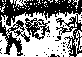 На одной из полян ребята затеяли игру в мяч. Удобно, как летом. Только вот приходится играть в пальто, потому что Тамара Григорьевна запретила раздеваться — всякой самостоятельности есть предел.