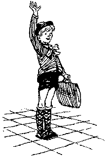 В коридорах было много чёрных зонтиков. С ними ходят здесь не только девочки, но и мальчики. Они мне показали прямо в коридоре, как это они ходят. Я представила под зонтиком Алёшу: важный— настоящий президент. А у Миши зонтик обязательно бы звенел. Карман звенит, и зонтик бы звенел.