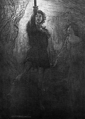 Мощным напряжением силы он вырывает меч из ствола и показывает Зиглинде, охваченной изумлением и восторгом.