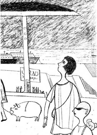 Вот взять хотя бы их сумки на колесиках. Вещь удобная, слов нет, тащишь такую сумку за веревочку, а она катится за тобой на колесах, задевая по ногам прохожих. Но сделаны были эти чудо-сумки в виде забавных зверюшек, и вид какого-нибудь дяди, влекущего за собой на веревочке поросенка на колесах, с апельсином во рту и застежкой на спине, был достаточно смешон.
