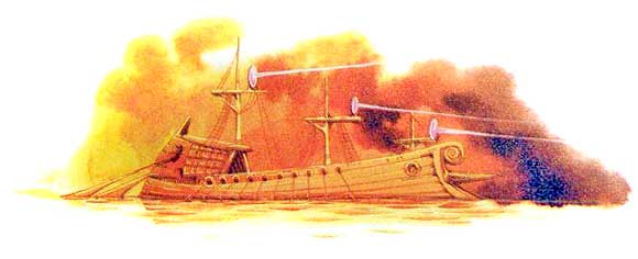 На берегу закипел бой. И в тот же момент возле острова Пакира разгорелась грандиозная морская битва.