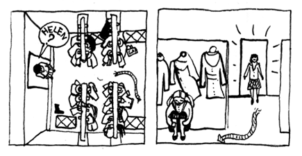 Никакого ответа. Да я и не ждала. Я не сомневалась, что она где-то рядом. Вся беда в том, что раздевалка у нас огроменная — ряды и ряды вешалок с зимними пальто и шерстяными шарфами. Тут часами можно искать.
