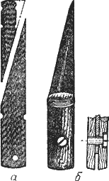 Н о ж для резьбы можно приспособить любой (лишь бы он был хорошей стали), заточив его, как показано на рис. 1. Качество ножа ориентировочно проверяется напильником или надфилем: по лезвию хорошей стали они скользят или «берут» его с трудом. Но при первой возможности надо сделать специальный нож с лезвием длиной не менее 100 мм, и лучший материал для этого – вышедшее из употребления ножовочное полотно механической пилы для металла. Разрезав его наискосок с помощью наждачного круга, можно получить заготовки для двух, а то и трех ножей – одного большого и двух маленьких. Для маленьких ножей подойдут: перочинный нож, полотно ручной ножовки для металла, надфили, безопасная бритва.