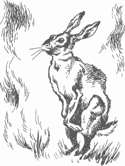 Оказавшийся в затруднительном положении кролик, не зная, куда деться, вскочил на камни и начал выделывать такие трюки, что наши охотники остановились разинув рты. Кролик подскакивал, как мячик, стараясь ни на секунду не задерживаться у земли: чуть только притронется к ней и тут же подскочит как можно выше.