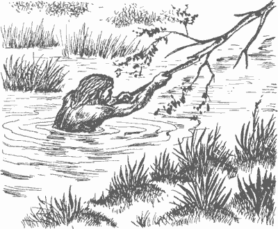 Даже вожак обратил внимание на жердь: он взял ее в руки, подержал, но, не зная, что с нею делать, бросил в болото.