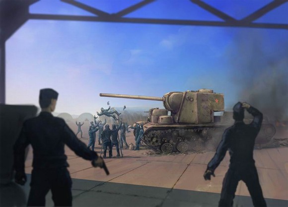 Над соседним русским ангаром поднялось облако черного дыма и на плац выехало нечто огромное, страшенное как все семь смертных грехов вместе взятых, и закопченное от катков до крыши. Немцы попятились, машинально хватаясь за пояса с кобурами.