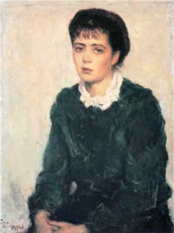 Виктор Орешников. «Псковитянка». Задумчивая русская женщина. Тонкие черты лица северянки. Она молчит. Только ее глаза, чуть раскосые, немного печально глядят куда-то далекодалеко. Простой сарафан. Скромный платок. Руки спокойно лежат на коленях. Светлая гамма холста, тишина, царящая около прекрасной псковитянки, где-то сливаются с обертонами мыль-никовской «Тишины». Картина не взывает, не орет, не пытается кого-то поразить… И однако, около этого портрета все время собирался народ.