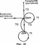 Рисунок 35 дает граф этого автомата, где стрелки показывают операции, которые нужно выполнить, чтобы перейти от одного состояния к другому. Ваша программа должна реализовать этот автомат, причем переходы должны выбираться случайным образом, если это возможно.