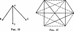 Может оказаться, что проведено 14 отрезков, не образующих треугольников (как показано на рис. 37).