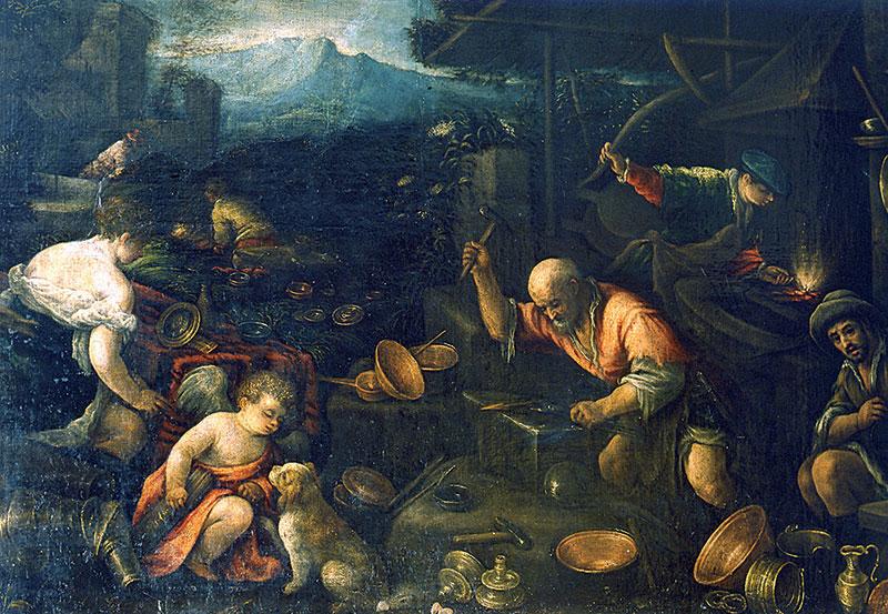 Это целая страница в истории итальянской живописи – венецианская школа художников Бассано. Несколько поколений, плодотворно работавших и имевших множество учеников, не говоря об их широко распространившемся влиянии. И вот два больших холста с выписанными красной краской на лицевой стороне инвентарными номерами. Сравнение с опубликованными в журнале «Старые годы» списками не оставляет сомнений: те самые, которые были в числе сотен других картин исключены Николаем I из императорского эрмитажного собрания по той простой причине, что не соответствовали его личному вкусу. Осужденные картины подлежали частично уничтожению, частично продаже. Судьба свела эти два номера в одних руках, более того – два номера, принадлежавших кисти отца и кисти сына: Франческо Бассано «Кузница Вулкана» и Якопо Бассано «Положение по гроб».