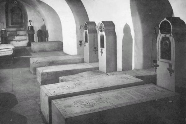 Усыпальница бояр Романовых в подклете собора Спаса Преображения Новоспасского монастыря.