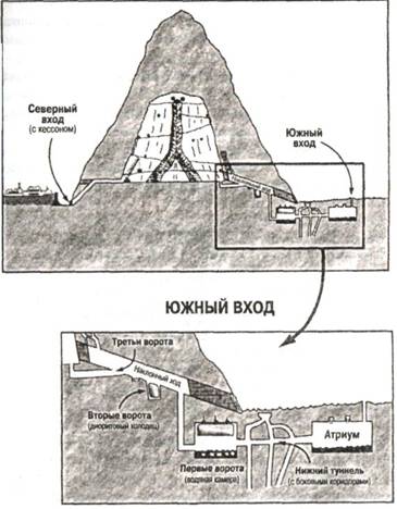 Следует признать, что это был шедевр технической мысли: кессон длиной сто метров и высотой сорок футов отводил в сторону болотную воду, и это позволяло увидеть квадратную каменную дверь, выбитую в основании горы. Она была на сорок футов ниже поверхности воды.