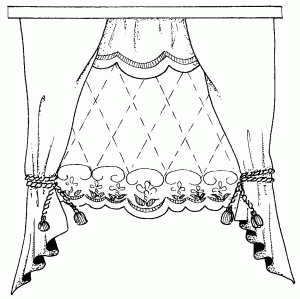 Рис. 66. Драпировка из тонкой ткани с фестонами, вышитой гладью с бридами.