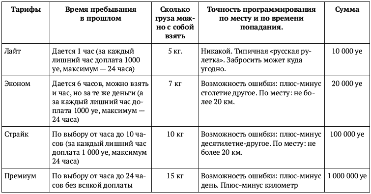 Тарифы на путешествия в прошлое