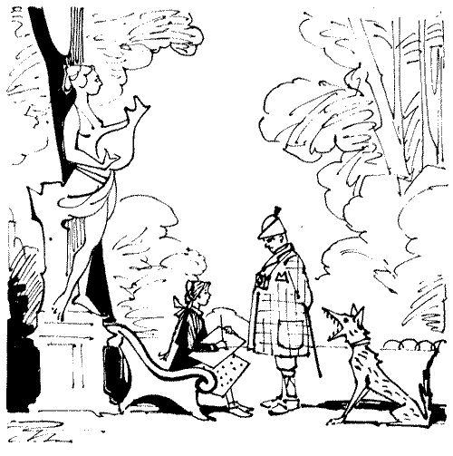 Это было так неожиданно, что девочка от испуга положила кисточку в рот. Перед ней стоял рыжий толстяк в синих очках и клетчатом пальто. У его ног лежала большая собака.