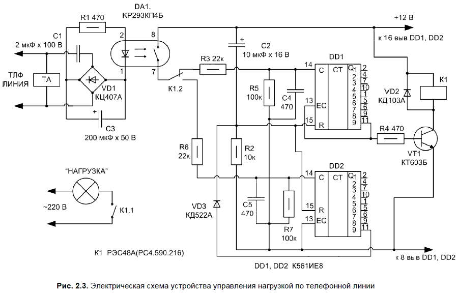 Схема телефонной приставки, которую я предлагаю на рис. 2.3, окажет несомненную пользу радиолюбителю, который хочет управлять (включать/выключать) электронные устройства, посылая телефонный вызов по своему номеру.