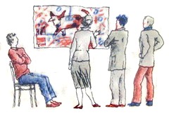 Её повесили на стену. Прямо тут же, в конструкторском бюро. Теперь конструкторы подходят к нашей картине полюбоваться. Чтобы отдохнуть немного от своих чертёжных досок. Ладно, пускай отдыхают. Жаль только, для детсадовской малышни нам снова придётся делать. Что-нибудь другое.