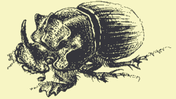 И, чтобы завершить свой рассказ о крымских навозниках, несколько слов о моем самом любимом жуке из этой плеяды — лунном копре. Назван он так, наверное, за то, что летит на свет ночью. Жуки эти довольно крупные, смоляно-черные, блестящие, будто вдобавок еще и покрыты лаком; телосложения коренастого. У самки — короткий, будто усеченный, рог и выпуклая спинка, у самца же рог острый и высокий, а на спине целая система впадин и выростов, включая два рога по бокам спинки, правда, более коротких, чем главный, головной. Короткие сильные ноги с зубцами выдают в нем профессионального землекопа.