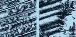 А по ту сторону стены, у застрех тростниковой крыши, весь день шла разнообразная и неутомимая работа: небольшие изящные осыодинеры носили в отверстия тростинок парализованных ими гусениц на прокорм своим личинкам; пчелки-листорезы доставляли сюда, тоже в тростинки соответствующего диаметра, зеленые «стеноблоки», пчелы-антидии — комочки пуха для ячеек, пчелки-осмии — порции глины для тех же целей; тут же вились различные «кукушки» мира насекомых, ожидающие удачный момент, чтобы в отсутствие хозяина подсунуть яичко в ту или иную ячейку. Это были и осы-блестянки, сверкающие всеми цветами радуги, и паразитические пчелы нескольких видов, и тощие, странного облика, наездники-гастерупции с длиннейшим хвостом-яйцекладом. А на чердаке устроили обширные гнезда общественные осы-полисты, и гнезда эти, отличавшиеся тем, что имели лишь однослойный сот с открытыми ячейками, обращенными вниз, сильно напоминали корзинки подсолнуха с вылущенными семечками. Ну и, конечно же, огромное количество насекомых слеталось на свет керосиновой лампы, которую я вечерами ставил в комнате поближе к оконному стеклу.