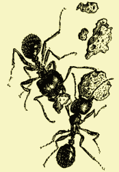 Ну а чтобы закончить рассказ о муравьях нашего Двора, нельзя не упомянуть о крохотных Мономбриум Фараонис, или, по-простому, домовых муравьях. В нашу страну они попали в незапамятные времена невесть какими путями, скорее всего с продуктами, доставлявшимися морем; теперь они живут почти во всех городах страны — тепло в домах постоянное, еды — вдоволь, убежищ — тем более. Жили тогда они и у нас в доме, надоедая порой изрядно: то дорожка из крохотных этих созданий тянется из щелочки в подоконнике или стенке к банке с повидлом, то сваренный со всеми предосторожностями суп оказывается изрядно «заправленным» мурашами; мер борьбы с ними отец так и не придумал, ну а я такой «приправой» вовсе не брезговал…