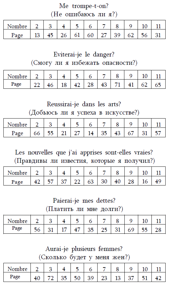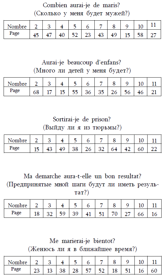 Кроме книги воспоминаний о Жозефине была издана книга гаданий по числам Ленорман. Приводим фрагмент из нее.