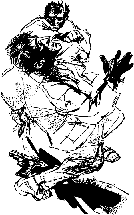 «Все ужасно глупо… Даже кирпича поднять не успею». А пальцы сами собой, неосознанно, захватили пригоршню песка. Еще миг — он швырнул песок в глаза противника, уже изготовившегося к решающему прыжку.