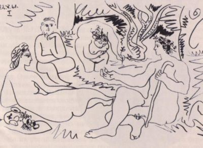 1907— Авиньонские девицы, Танец с покрывалами.Начало кубизма. Знакомится с коллекционером Канвейлером и Браком. Посещает Этнографический музей во дворце Трокадеро, увлекается африканской скульптурой. Посещает ретроспективную выставку Сезанна в Осеннем салоне.