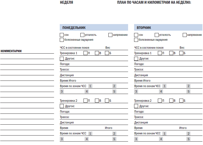 * П – плавание, В – велосипед, Б – бег. Аббревиатуры используются для экономии времени записи. Прим. ред.
