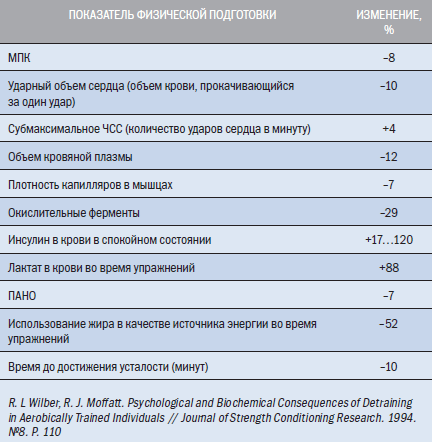 Итак, представляется достаточно очевидным, что две-три недели без упражнений приводят к значительной потере подготовки, в особенности основных компонентов выносливости, необходимых для успеха в многоборье. Время, требующееся для восстановления до прежнего уровня, во многом зависит от того, насколько длительным был период без тренировок. Как показывает практика, даже опытным спортсменам, желающим вернуться к прежней форме, потребуется период, минимум в два раза превышающий период вынужденного отказа от тренировок.