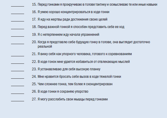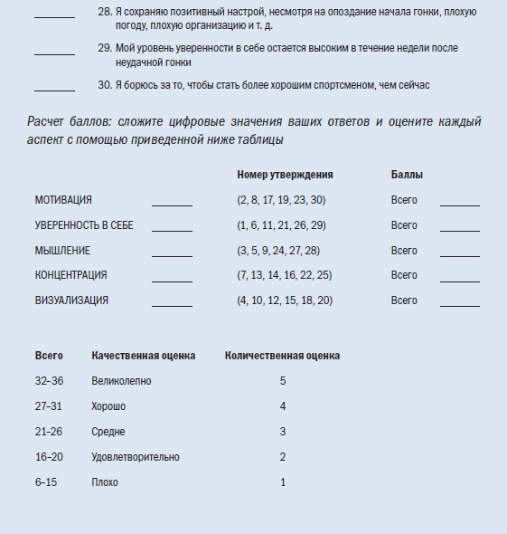 Скорее всего, ваша оценка в зоне мотивации равна 4 или 5. Я всегда замечаю это у своих подопечных спортсменов. Если в вашем случае это не так, то вам стоит хорошенько задуматься над тем, ради чего вы занимаетесь триатлоном и участвуете в гонках.