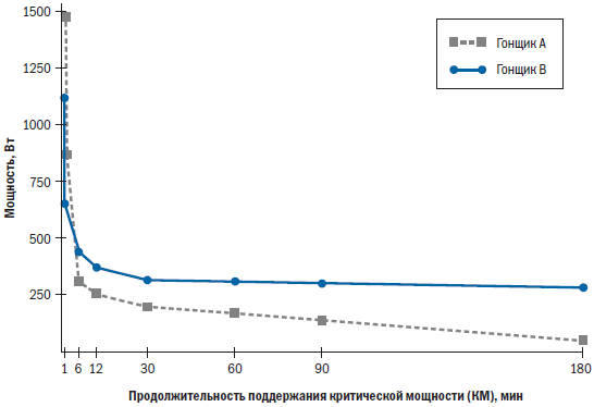 Рис. 5.1. Профиль критической мощности двух гонщиков