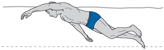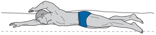 Положение бедер и голеней относительно поверхности воды контролирует ваша голова. Когда голова поднимается, ноги опускаются. Поэтому если вы при плавании держите голову высоко (например, смотрите на стенку бассейна перед собой), то ваши бедра и ноги «тонут» и не могут следовать за торсом по «коридору», который тот создает в воде. Это похоже на то, как если бы вы тянули за собой якорь. Вы вынуждены повышать тягу, а следовательно, терять много энергии. Очевидно, что это неэкономично.