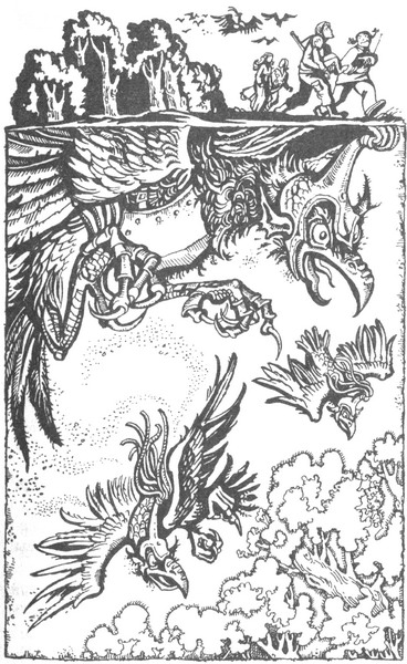 Темный дом Джералда оказался всего-то в миле от рощицы. Они шли напрямик, продираясь сквозь осоку, переходя вброд канавы, перелезая через изгороди и шлепая по заболоченным лугам. Сири ужасно устал, и великанша тоже. Гейр обернулся подождать, пока она нагонит остальных, и увидел, что над лугами к ним несется, хлопая крыльями, цепочка ворон.