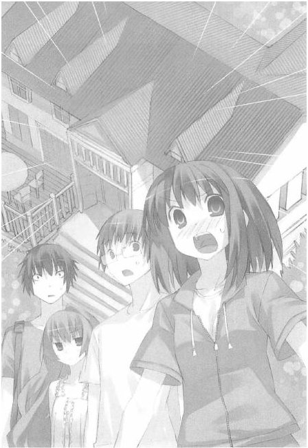 Ами оглянулась на остальных. «Ладно» проворчала Тайга, но остальные трое — Минори, только что закончившая выражать обуревавшие её чувства, Рюдзи и Китамура — остались безмолвными. Недвижимо стоя с широко раскрытыми глазами, сбившись вместе, словно маленькие пугливые зверьки, они продолжали благоговейно смотреть на представший перед ними пейзаж.