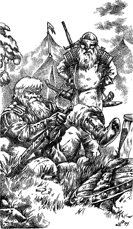 …Бородатые коренастые воители, не расстававшиеся с тяжелой броней даже на привале, провели Ниакрис и монаха к центральному шатру лагеря. Молчаливые гномы были угрюмы и деловиты, они даже не смотрели на странных гостей, однако все как один — заметила Ниакрис — втихомолку держались за свои магические обереги и амулеты. Некоторые из них, к удивлению девушки, оказались немалой силы, даже ей пришлось бы повозиться, обезвреживая их. Впрочем, устраивать тут драку она и не собиралась.