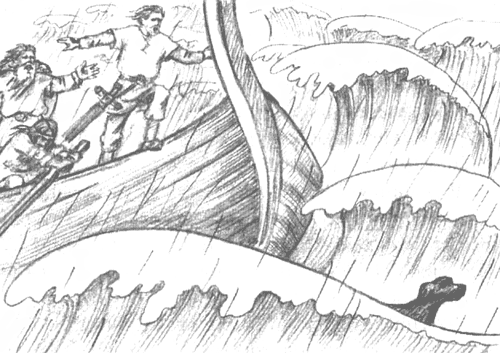 А затем — дикий и радостный лай, и черная фигура, подняв брызги, вбежала на мелководье навстречу лодке. Бьярни выпрыгнул за борт вместе со всеми, чтобы вытащить легкое суденышко на берег, а Хунин то бросался на него, то кружил вокруг, как черный тюлень. Бьярни отошел от лодки — остальные могли легко управиться с ней — и позволил, чтобы пес изо всех сил приветствовал его, чуть не утопив от радости.