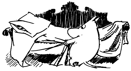 — Посмотри-ка, — сказал Снусмумрик, — он сидит на занавеске.