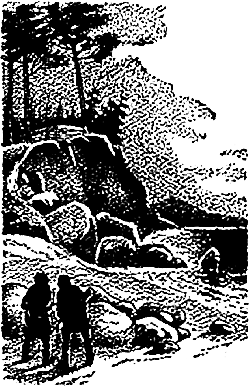 Подождали мы маленько, поползли вдоль берега. Видим — поляна, мелким щебнем и кругляком усыпана. За ней откос, на нем сосны и под деревьями избенка, низкая, вся в землю ушла, только крыша высунулась, из бревен связанная. Окошечко в четверть, чтобы зверь не влез, а винтовку оттуда высунуть.
