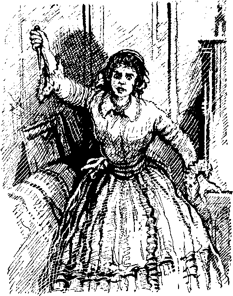 На третий день под вечер, почти в тот самый час, когда Монтгомери и я выходили из дома, чтобы попытаться освободить Элизу, мистер Гилмор, выпив предварительно для храбрости вина, отпер дверь и вошёл в каморку, где была заперта девушка. Услышав его шаги на лестнице, Элиза успела укрыться в дальний угол комнаты и загородилась столиком, составлявшим вместе с единственным стулом и старым брошенным на пол матрацем всю меблировку её каморки. Гилмор шагнул к девушке, но она приказала ему остановиться и в то же время выхватила крохотный кинжальчик, который Монтгомери перед её отъездом из Нью-Йорка подарил ей вместе с золотой цепочкой. Прощаясь с ней, Монтгомери надел ей на шею эту цепочку и шутливо заметил при этом, что, пускаясь в такой длинный путь, нужно иметь при себе оружие для самозащиты. Цепочка эта с висевшим на ней маленьким кинжалом оказалась в этот день на ней.