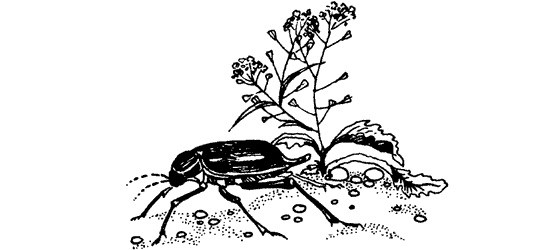 Издалека я заметил четыре черных пятна на низеньком кустике серой полыни. Они были хорошо видны на светлом фоне совершенно выгоревших от зноя лёссовых холмов предгорья Заилийского Алатау. Холмы безжизненны, на них — ни одной зверушки, птички, насекомого. Лишь кое-где мелькают как всегда неугомонные муравьи-бегунки, разыскивающие пропитание в царстве летнего покоя. Черные пятна обещали быть интересными. Впрочем, взбираясь по крутому склону к ним, я заранее решил, что это черные тли, обсевшие растение, может быть, вместе с муравьями. Хотя откуда сейчас быть тлям? Растения так сильно выгорели летом, чрезмерно жарким, бедным осадками.