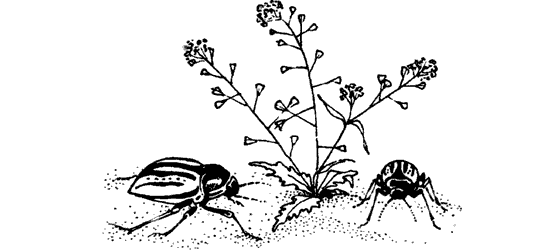 Возле муравейника, как всегда, царит оживление, и масса маленьких тружеников снует во всех направлениях. Но главное направление — тропинка, ведущая в заросли чингиля — к зеленой полоске тугаев вокруг ручейка. По ней и бегут добытчики с различной снедью в челюстях. Но и возле муравейника охотники не плошают.