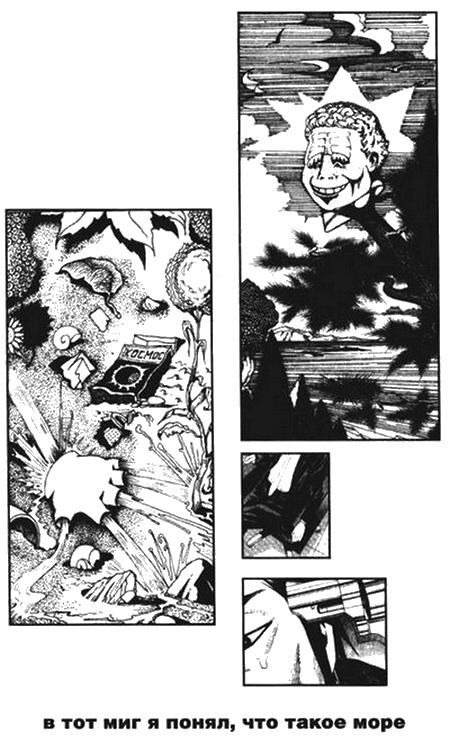 В тот миг я понял, что такое море, и это понимание сделалось основой моего существования. Это понимание сопровождалось чувством абсолютного освобождения: словно бы раздвинулось мое темя, и тонкая антенна стала выдвигаться в небо — тончайшая, стекловидная, абсолютно гладкая игла. На остром кончике этой иглы балансировал крошечный, но неимоверно тяжелый шарик, который был зрячим и для моей радости присматривался к разворачивающимся вне меня ландшафтам и горным хребтам, возлежащим в пене словно отряд отдыхающих драконов, гигантских медведей, утопленников, дев, монахов…