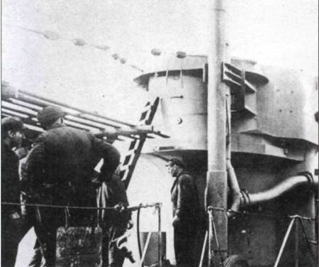 Две фотографии, демонстрирующие установку и испытания ракетного вооружения на U- 551. Все оборудование имело армейское происхождение, находившиеся в разработке 30ст Wurfkorper 42 Sprengракеты запускались из тяжелой пусковой установки Schweres Wurfgerat 41. Ракеты были неуправляемыми, предназначенными для систем залпового огня. До технологий, которые могли позволить субмарине успешно запустить тактическую ракету, оставалось еще 30 лет.